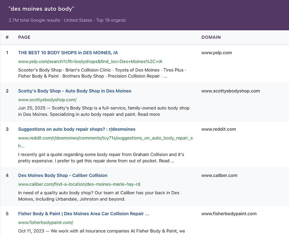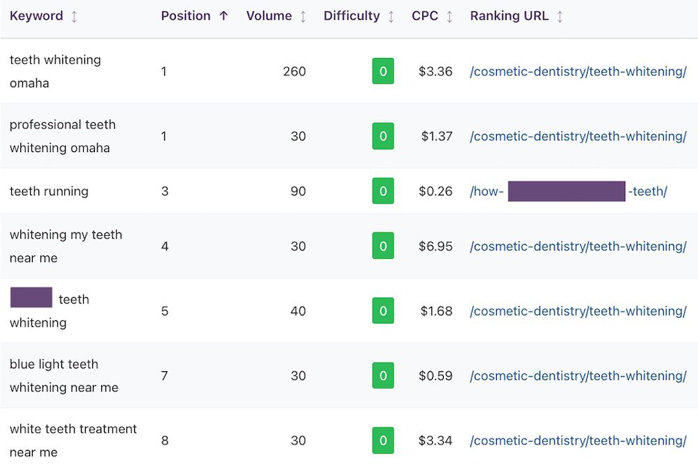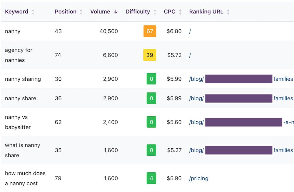 - Keyword Rank Checker – Enter any domain and see up to the top 1,000 keywords it currently ranks for in Google. This data includes ranking position, search volume, difficulty and the specific page that’s ranking. Use this tool to find quick wins (keywords on pages 2-3) where a small push could move you onto page 1.